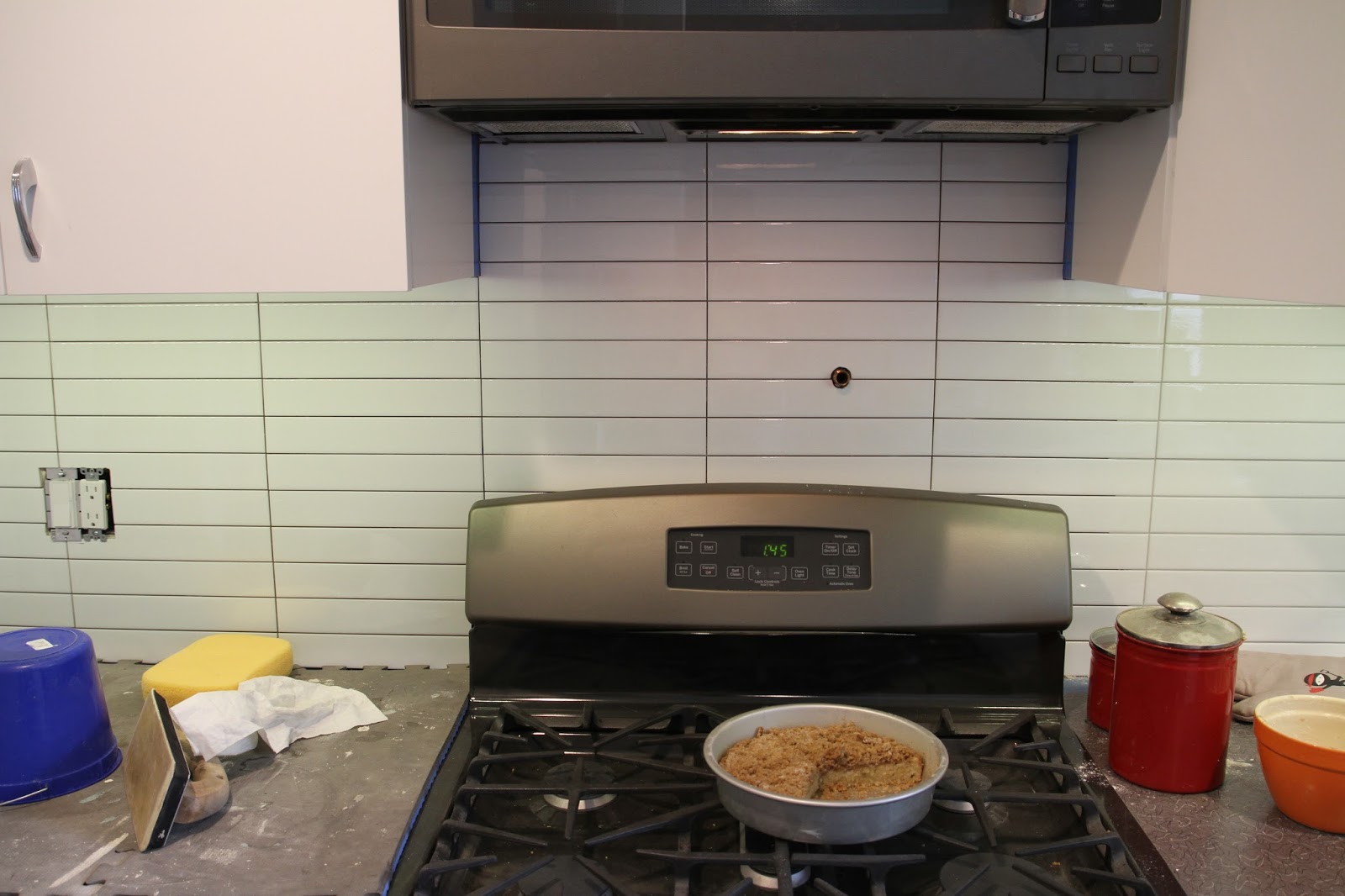 With the busy Formica countertops we chose, we thought we'd want to stick with white tile for the backsplashes in our kitchen. We considered traditional subway tile, or other shapes, like a Moroccan-style. And we decided on a long rectangle tile -- a 2" x 10" installed stacked, with light gray grout.